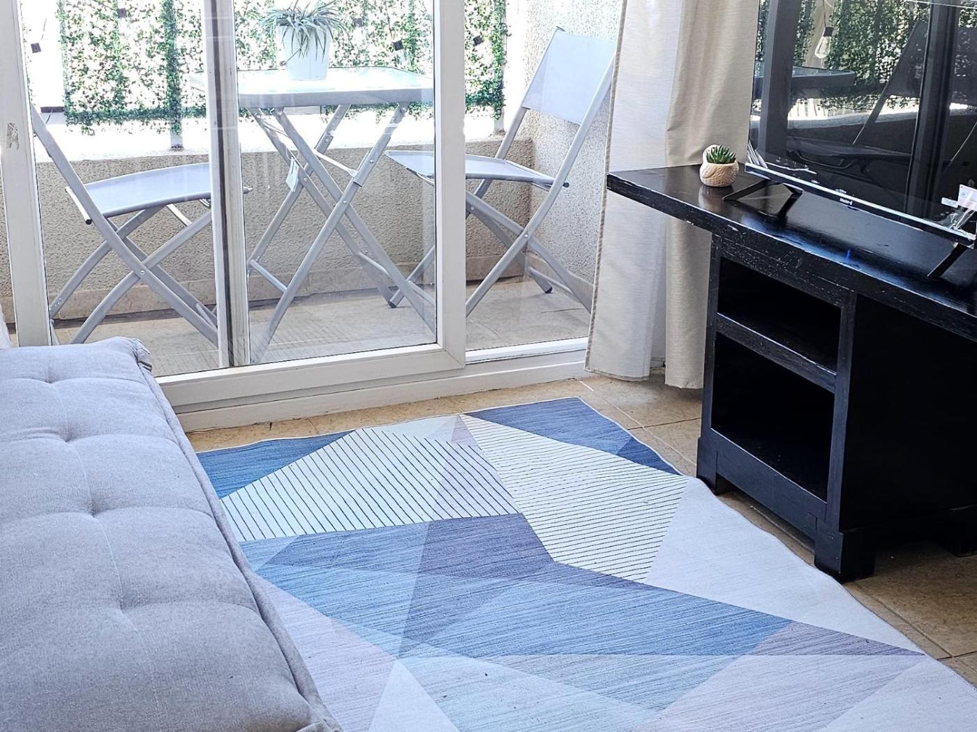 El apartamento tiene terraza, 1 dormitorio, sala de estar y cocina bien equipada. Hay TV de pantalla plana.