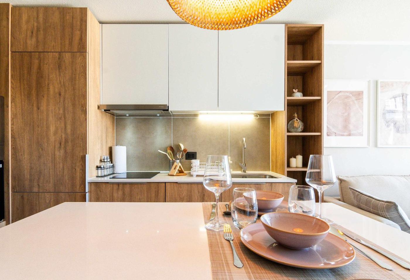 El apartamento tiene 1 dormitorio, 1 baño, ropa de cama, toallas, TV, cocina totalmente equipada y patio con vistas a la ciudad.